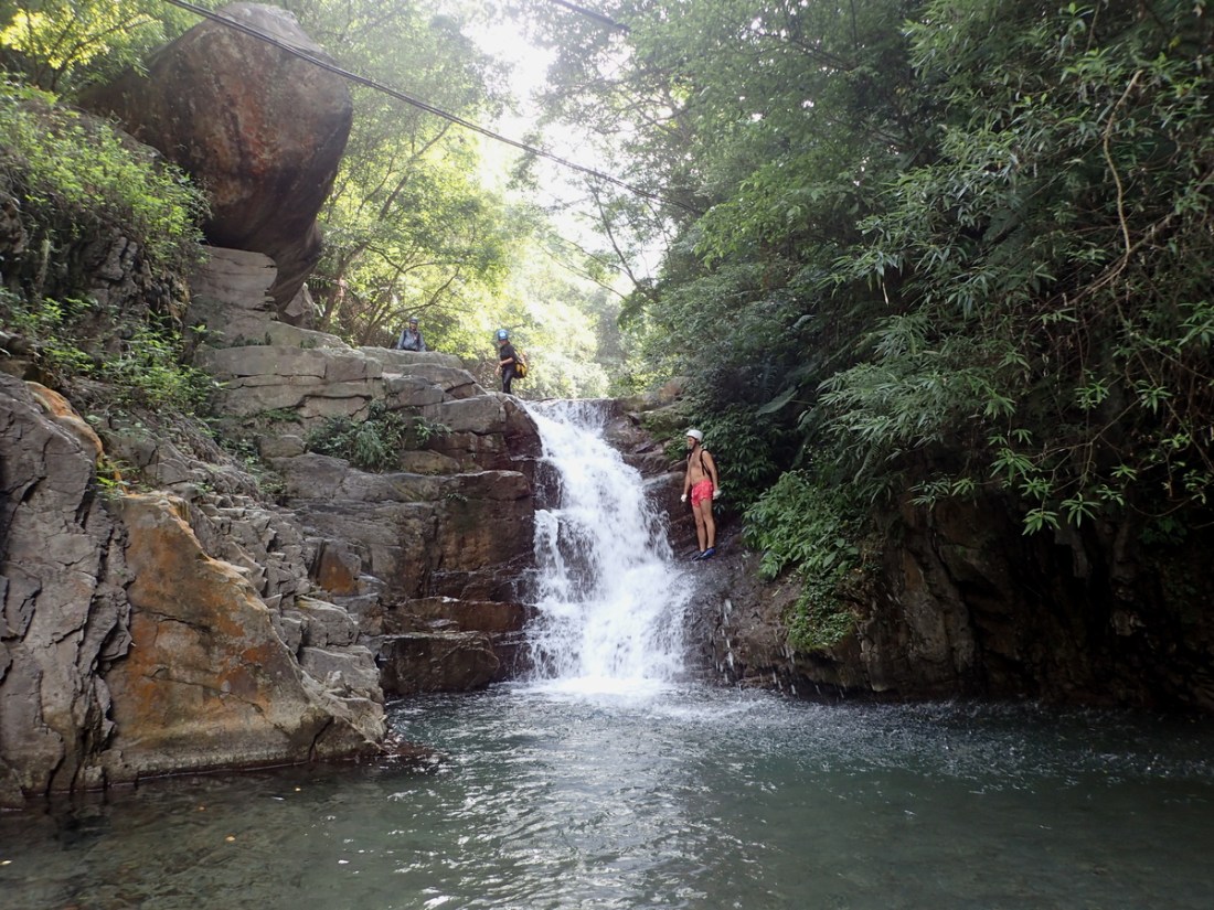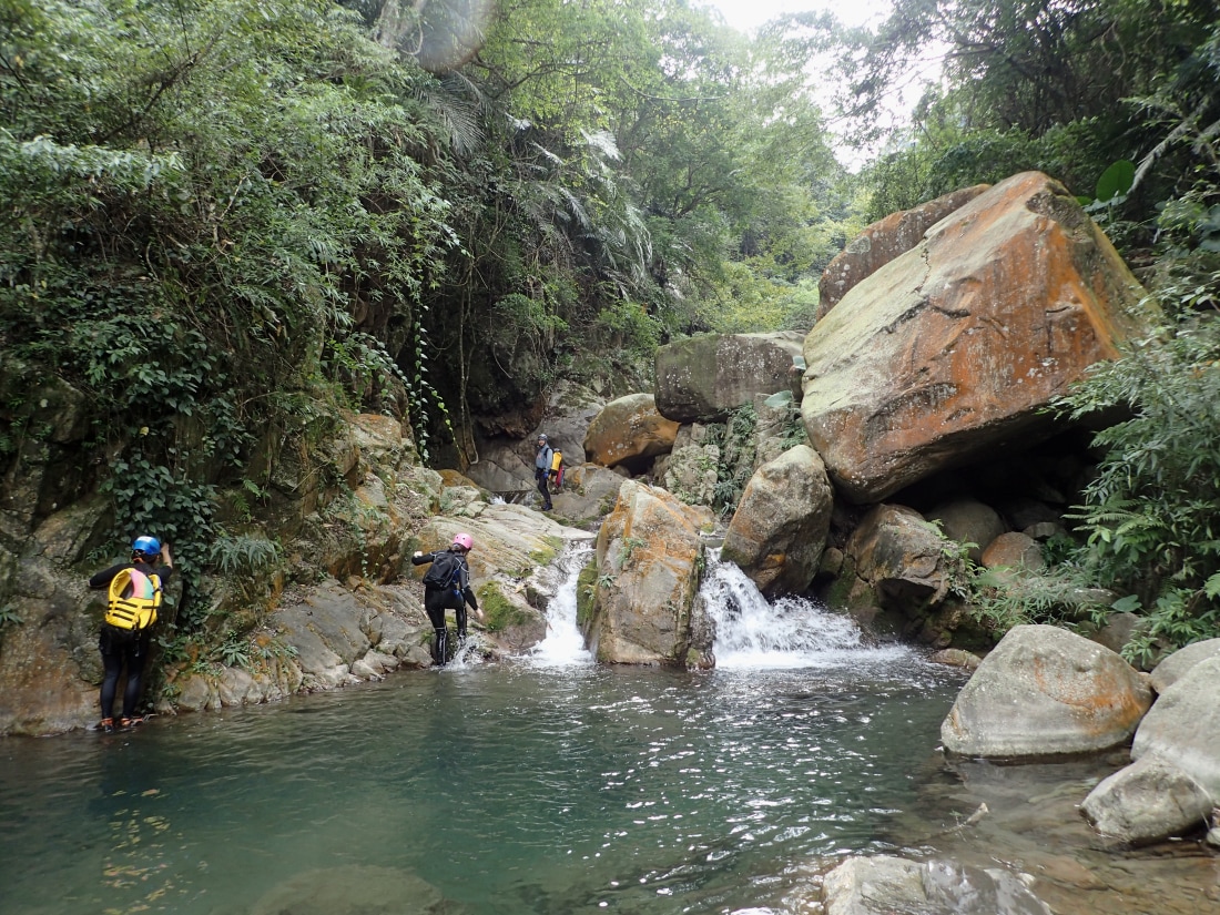 This is a fairly easy and enjoyable trace. There are a lot of pools around the first half of it that were great to swim in, and you will encounter plenty of small waterfalls along the way. There are a couple of waterfalls you may have difficulty climbing if climbing isn't your thing however there is always a way to avoid them if you want to continue on. This includes the large waterfall where you can see the highway, you can climb out and around cross the road and get back in for a bit.