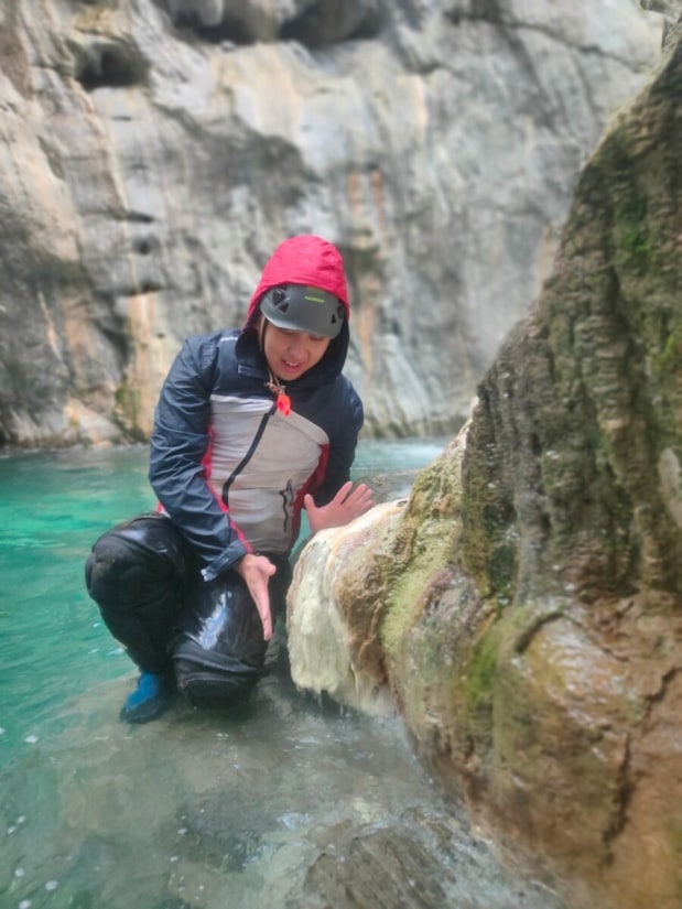 Breathtakingly beautiful. Wulakusan hot spring outcrops lie on the rock wall at the end of the river trace. This creek has many emerald pools like the ones in Sanzhan River and beautiful gorges. This isn’t a river trace for beginners due to swiftwater and suckholes.