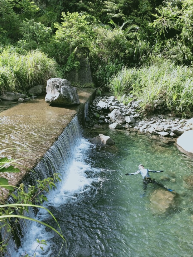 Water Slide:24.8777,121.52876 Jialiuliao creek is a popular spot for river tracing. The river trace is easy and the water is clean. There is a mountain trail leading to the water slide in the left fork.
