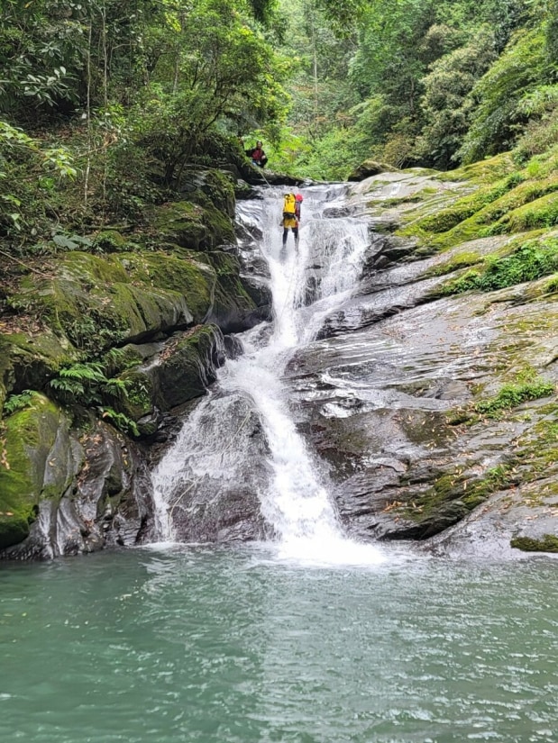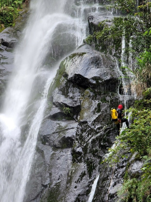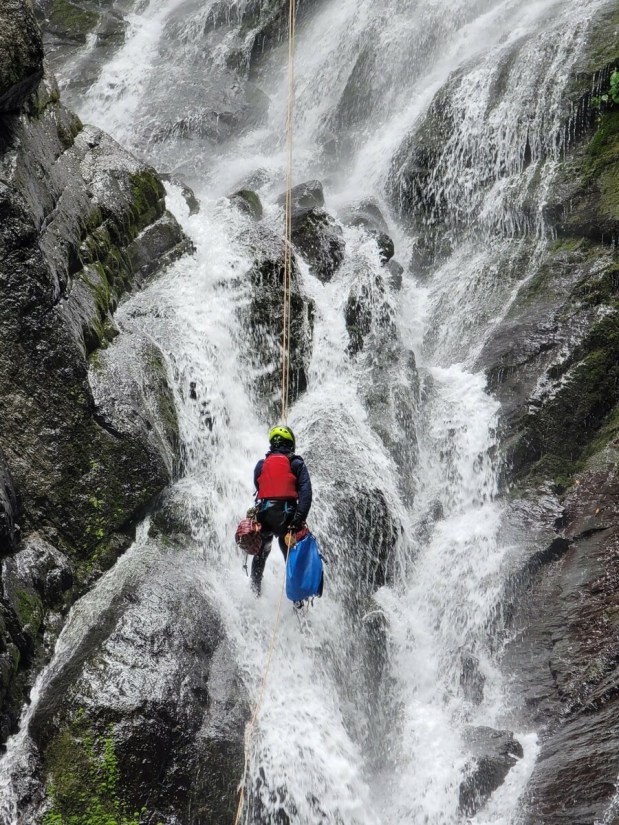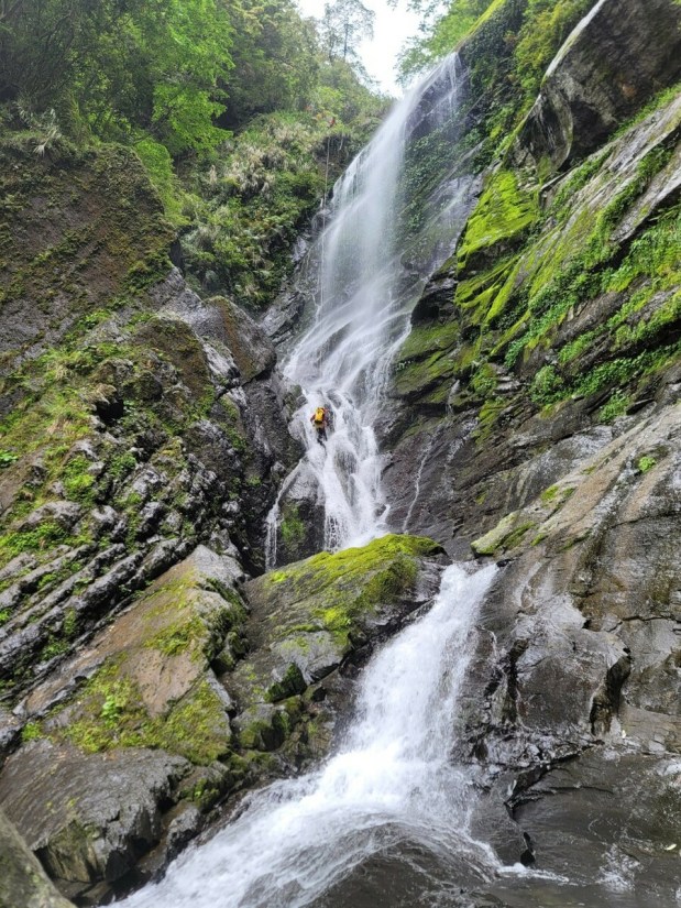 A difficulty canyoning route. Tallest waterfalls are around 60 meters, but you need ropes that are much longer than that.