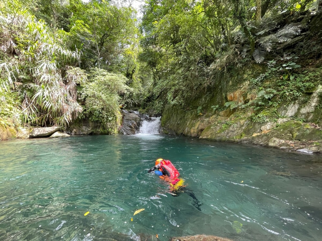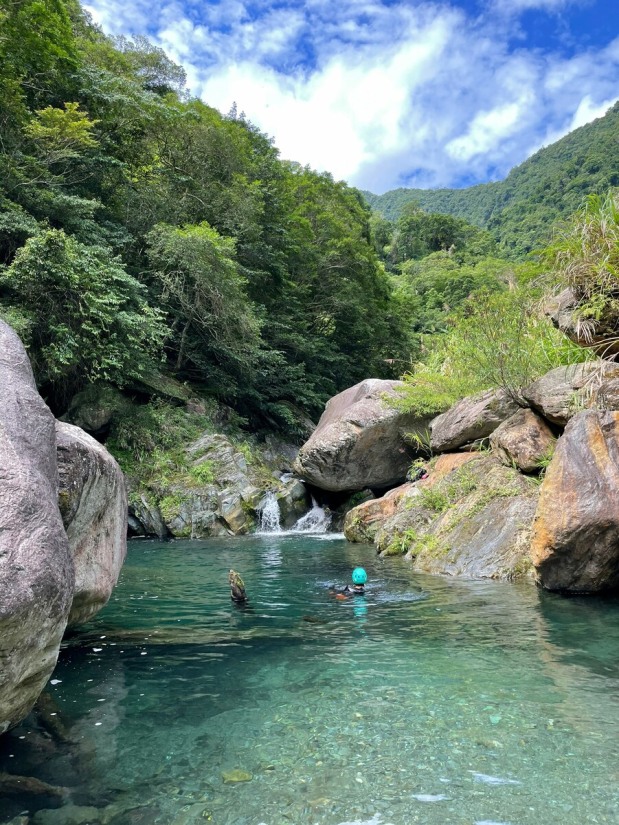 Heliu Creek is a beautiful creek with countless pools and is a must for river tracers. The pools are pristine and emerald, and many of which are able to be jumped into. Quite a few pools have waterslides, and an abundance of natural bouldering walls can be found along the creek. Near the end of the trace is a 6-meter waterfall and its huge pool. After the waterfall is there a short gorge that connects to the Ending GPS on this post. The creek intersects with Nan'ao Old Trail, and it takes 1 hour from the trailhead to the river. Parking spaces are around the trailhead. Heliu Waterfall (12M): 24.42974,121.69213