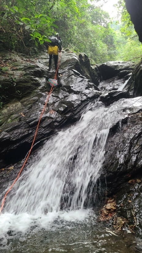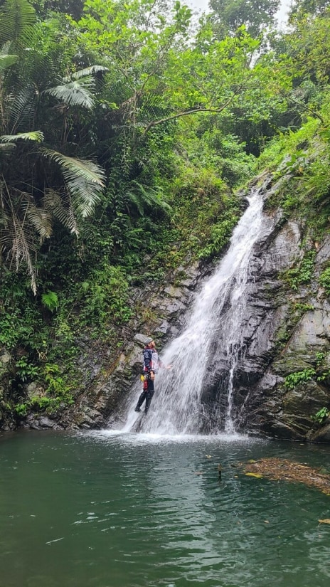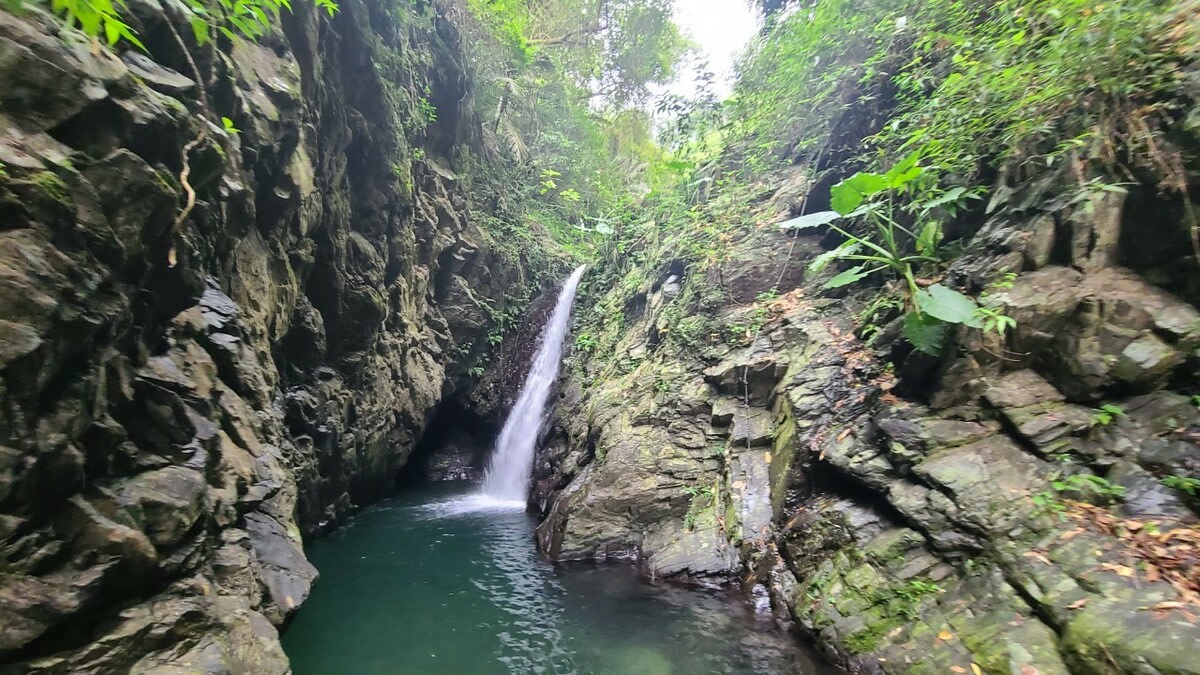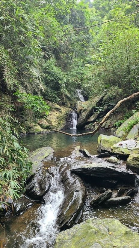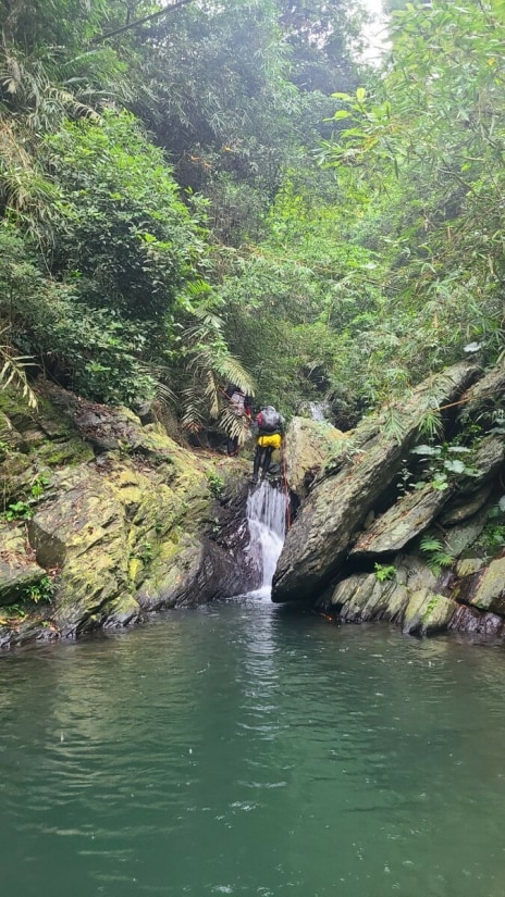 Difficulty: 3/5 when dry 4/5 with normal water flow The entrance to this small creek is just 200 meters away from Goddess' Pool(戴娥娜神池) There are several waterfalls ranging from few meters tall to 7 meters tall, the tallest one. It's much easier when it's dry. I wonder how difficult it might be when water flow is higher, probably pretty tough. For every waterfall, either there's always a way to go around or you need to climb up the waterfall(some ropes are already there). Several pools can be found by the waterfalls.