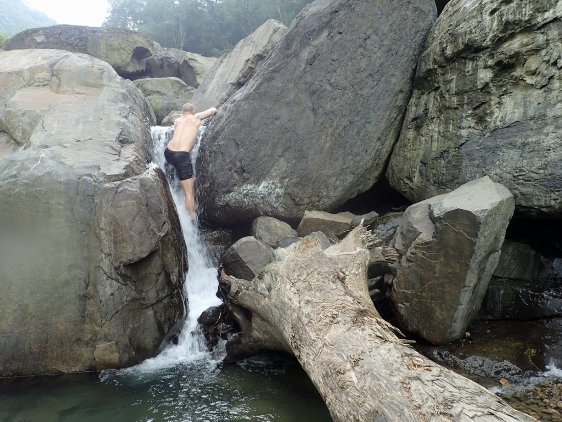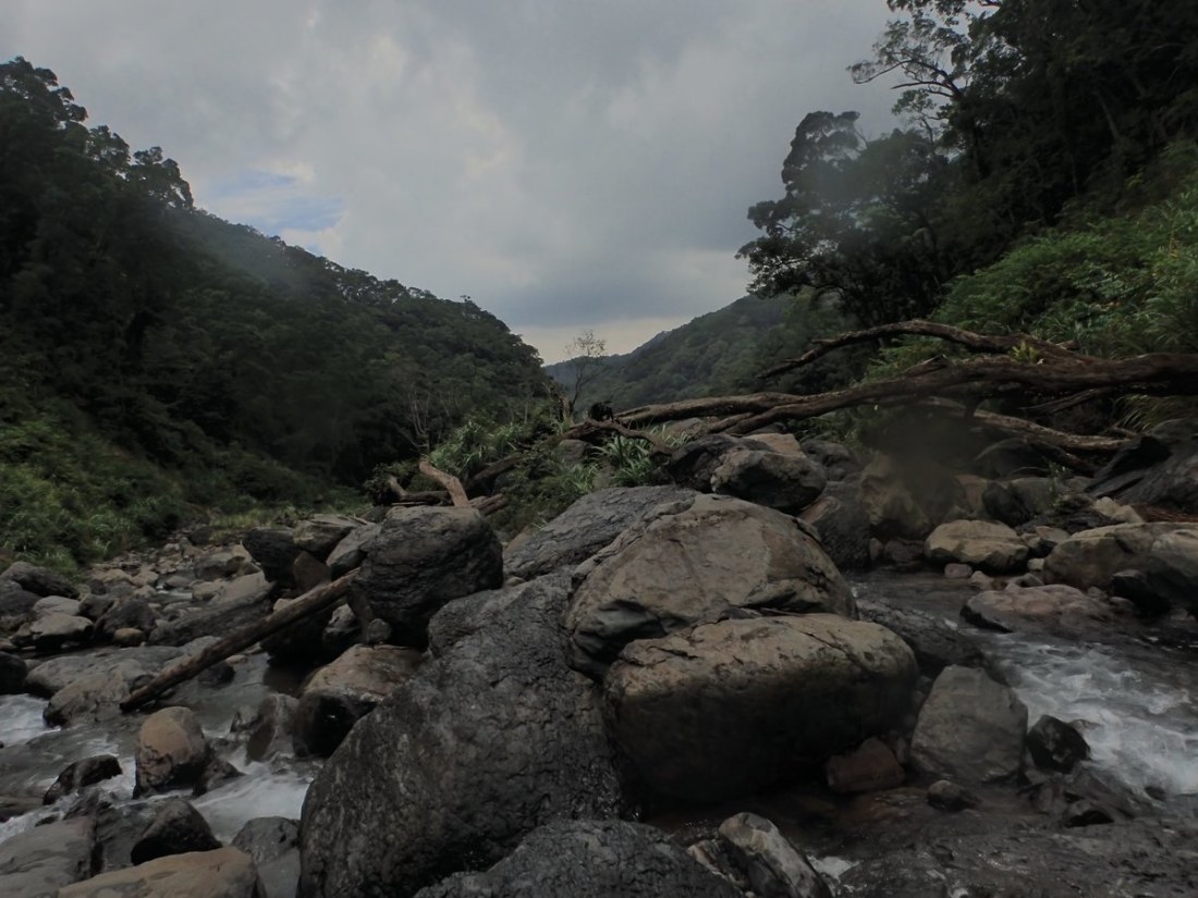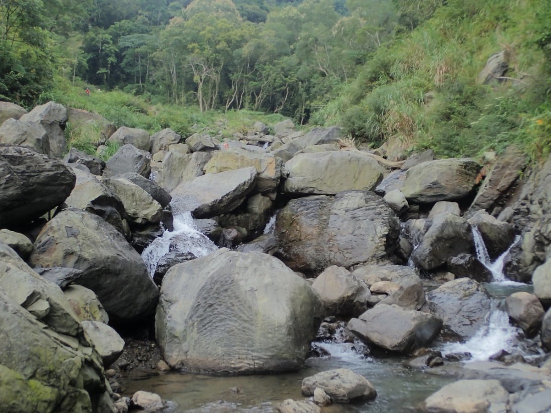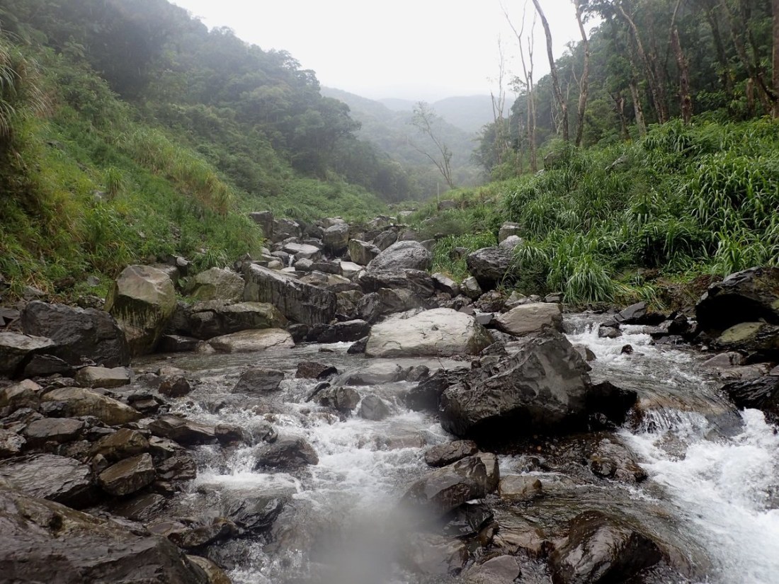 Located not too far away from Taipei city this makes for a perfect day trip. If you aren't up for river tracing it is possible to hike in and out to the waterfall at the end, though the trace is more scenic, enjoyable and makes for a better adventure than the hike in my opinion. This is a nice easy river trace through a wide-open valley with nice mountain views on either side. You can park at the GPS point and walk further along the trail than you are able to drive to get down into the water. You should be able to get into the water just above one major waterfall, you can walk back and take a look at it if you want before heading forward. The way upstream is a bit tiring but there are no major obstacles till the ending GPS point where you will find a large waterfall with a nice pool or swimming in below teeming with fish. You can take one of the two branches at the fork further up than the waterfall if you wish, the climbing becomes a bit more difficult and you shouldn't continue this way unless you are confident in your abilities.
