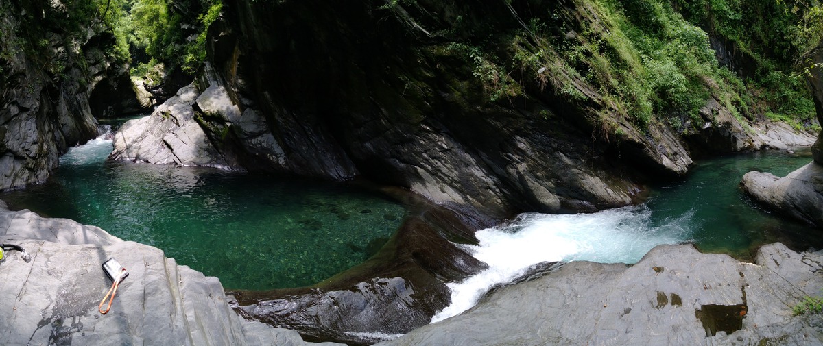 Goddess' Pool (戴娥娜神池) at the destination. This river trace is a popular commercial route; it is easy and the pool is beautiful.