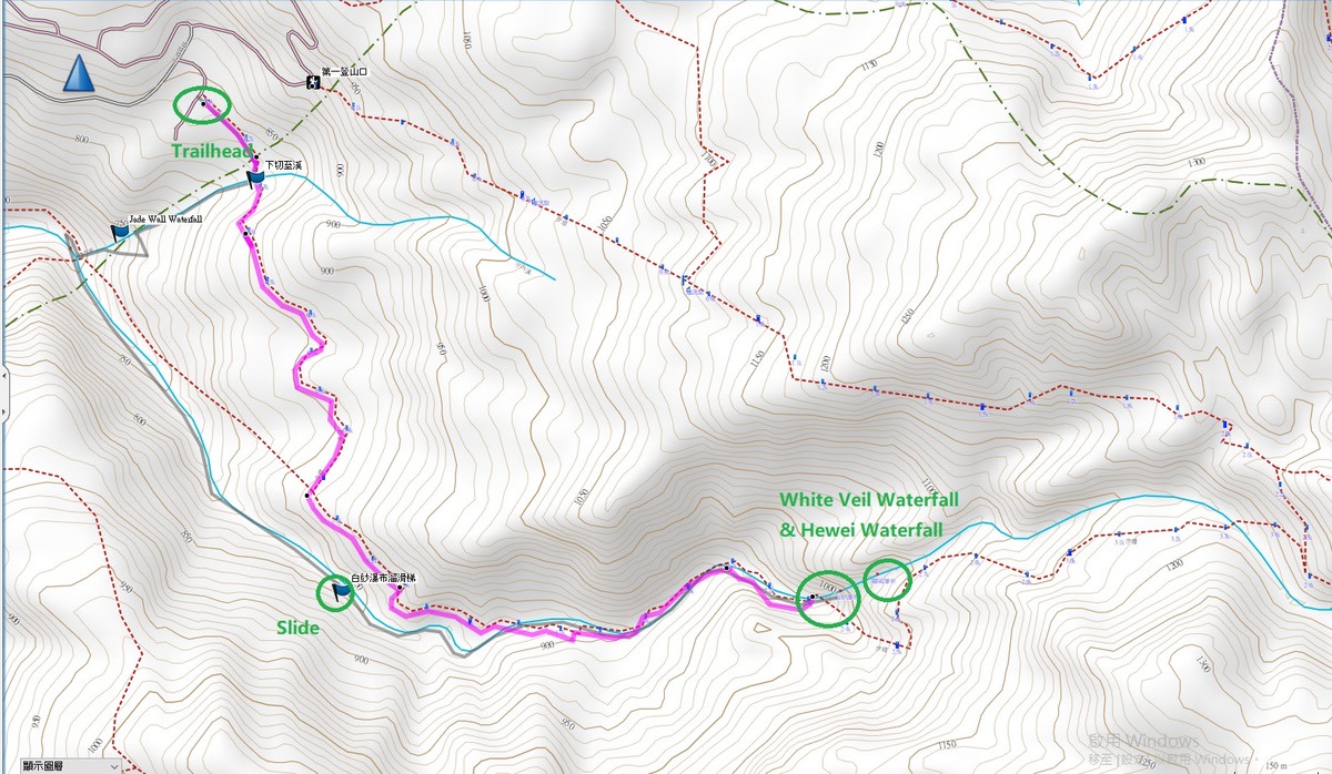 1. This trace does not include the famous Yunei Slide (這裡不是宇內溪滑水道). The slide on this route is different from the well-known one. It can be confusing because both slides are in the same creek, but they are far apart, making it unlikely to visit both in a single trace. (The famous one: 24.790678871183513, 121.39577197890424) 2.!The GPS pin of White Veil Waterfall on Google Map is WRONG! The correct one is the one on our ending GPS. 3.Baisha Waterfall/White Veil Waterfall (白紗瀑布) is a serene and beautiful waterfall, standing at approximately 40 meters tall, with a large pool perfect for swimming. Above it, you can find Hewei Waterfall (赫威瀑布); to reach it, walk around on the left side. Further up, you can access the Hewei Divine Tree Area. 4.To embark on this river trace, it is safest to obtain the permit 5-60 days in advance from Chatianshan Nature Reserve (插天山保護區). The trailhead starts through a private farm residence called "Kapu No.17" (卡普17號). The parking fee at the residence should be around 100 NTD. Once you pay for your parking, the owner probably wouldn't bother to check if you have the permit. 5.To get to White Veil Waterfall, walk down the farm, and you'll reach a small stream soon. Cross the stream, and you'll find a hiking trail. The trail first goes around the mountainside, then stretches along the creek and eventually touches the creek. On the lateral part, the trail sometimes goes by the creek and sometimes merges in the creek. Finally, the trail completely disappears, and you can only river trace in the creek to the waterfall. 6.The creek is VERY SLIPPERY. Be extremely cautious while walking in the river. 7. Water Slide Location: 24.789783, 121.420900 Be very careful with this water slide. It is extremely slipper. Make sure to clear your path before you slide. I almost fucked myself up on a big sharp rock in the water but miraculously only got a scratch.