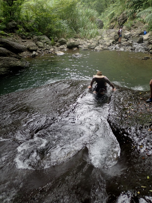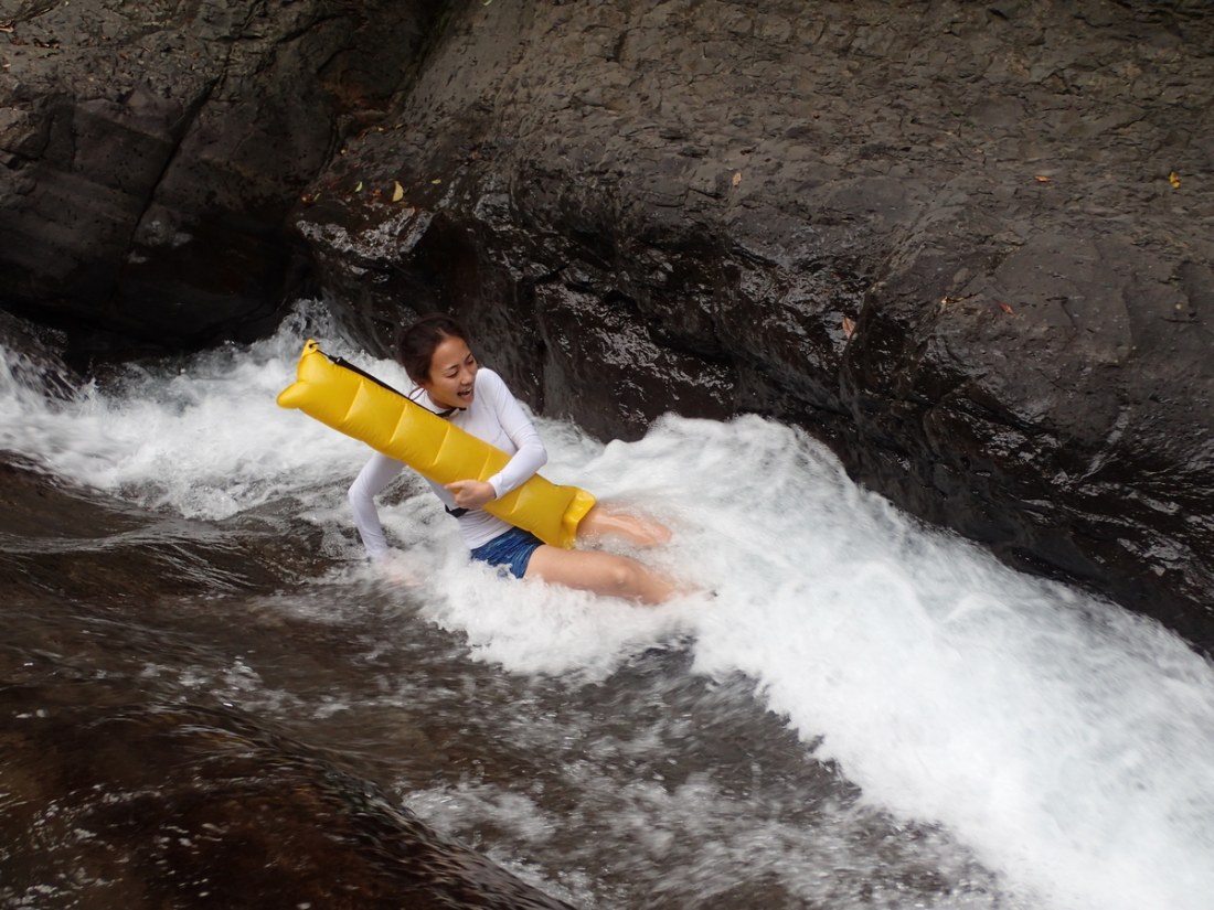 Easy trace located quite close to town. Perfect for someone just looking to get into river tracing. The ending GPS location will get you to an area with a big slide that is quite fun, and quite safe. The final pool is deep so make sure you know how to swim. Some people I know have taken dogs on this trace up until the waterslide so thats possible if you want to give it a go. You can take the left-hand fork away from the main pool you end up at and go slightly further up to find a small pool to relax in. It should be easy to recognize as it's shaped a bit like a very specific part of the male anatomy. You can either continue further up this stream, though it does get a harder quite and I wouldn't suggest it unless you more experienced (only went 20 mins up myself, though would like to go back with more time as it looks fun) or find a trail on your left-hand side if you're facing upstream you can use to walk back to where you started. If that all seems a bit confusing check the photos for a drawing