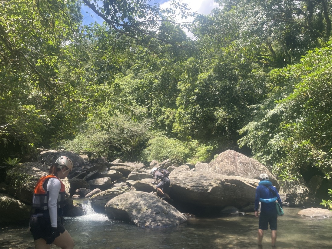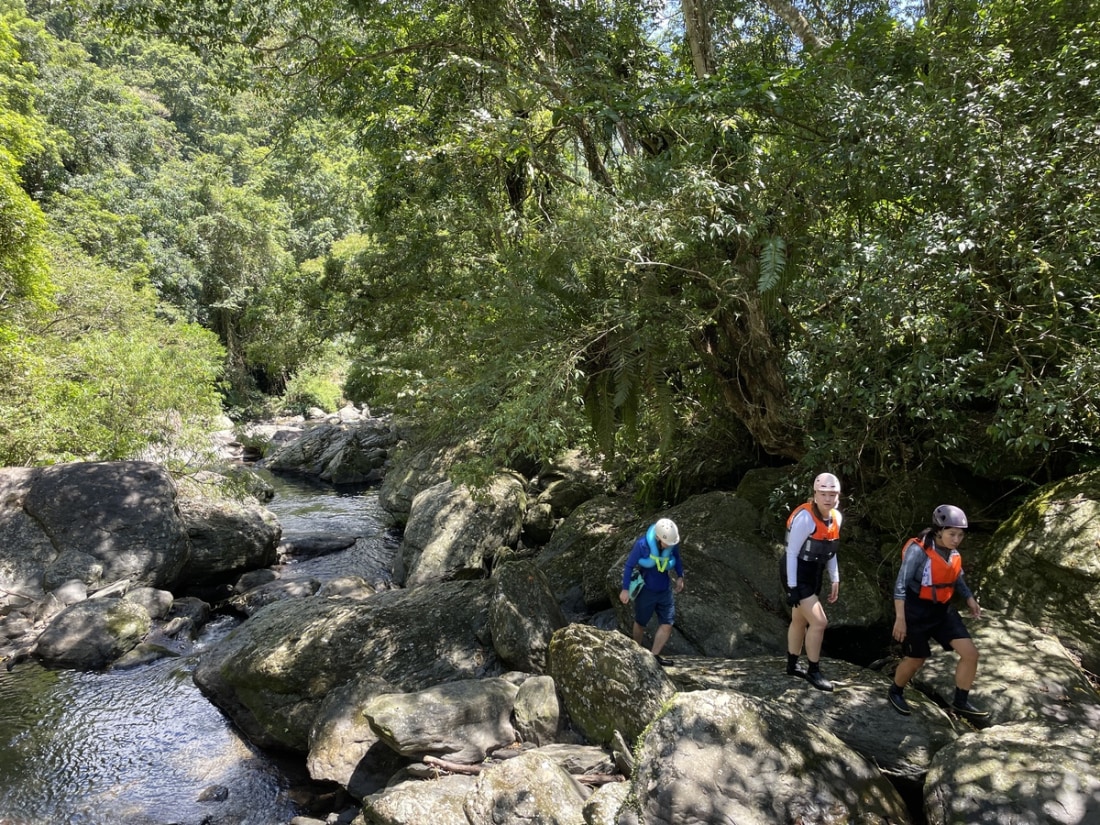 Strenuous but worth it! There is a split at 0.67km where you can go left or right. Explore both! Left is easier and right is harder, and may include steep climbs requiring a rope. There are sections where you can escape the canyon via dirt paths, and others with vertical walls on both sides. Not a place you want to be in a rain storm. If you find the trail back to the start, it comes out in someone's property with a locked gate; drop back down to the creek when you can. I made a spreadsheet of the best river traces in northern Taiwan, check it out here: https://docs.google.com/spreadsheets/d/15QNhE9z3lhwz33C6V4P11dljPzWafFGKowzTi9Wrkjg