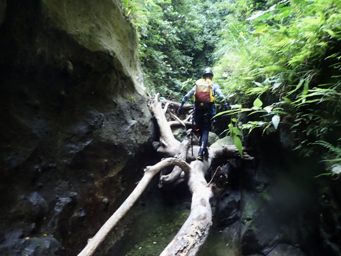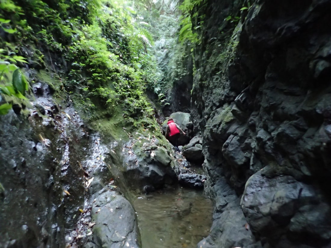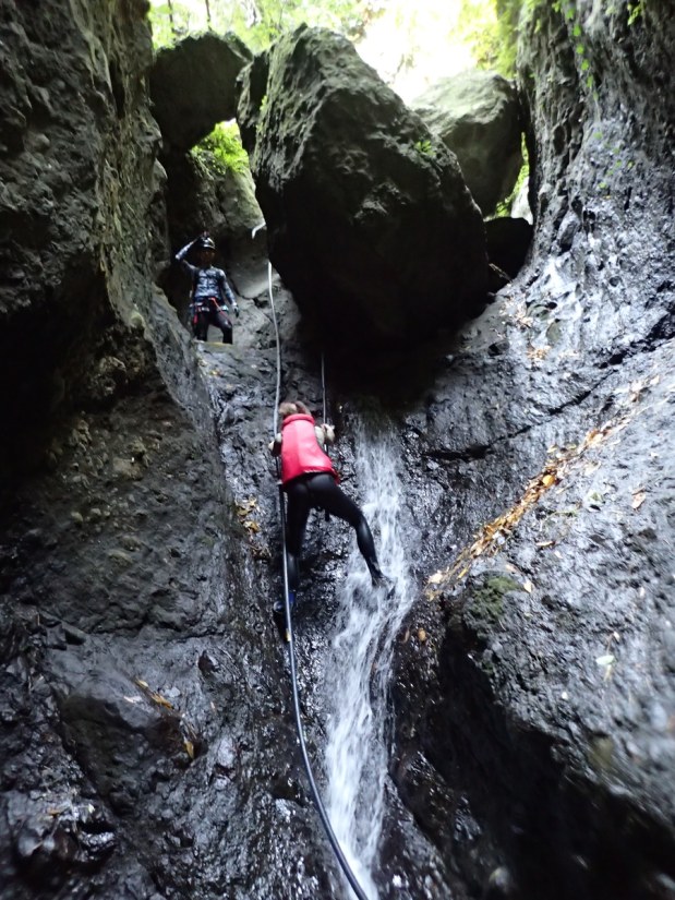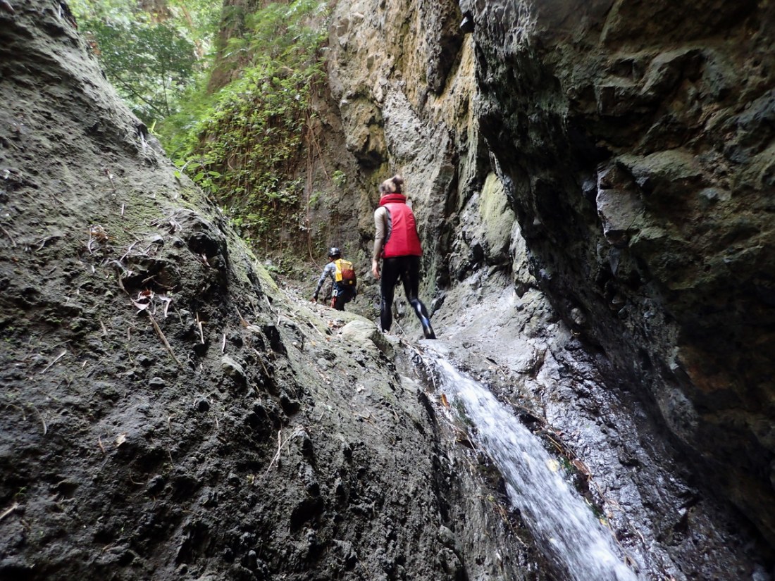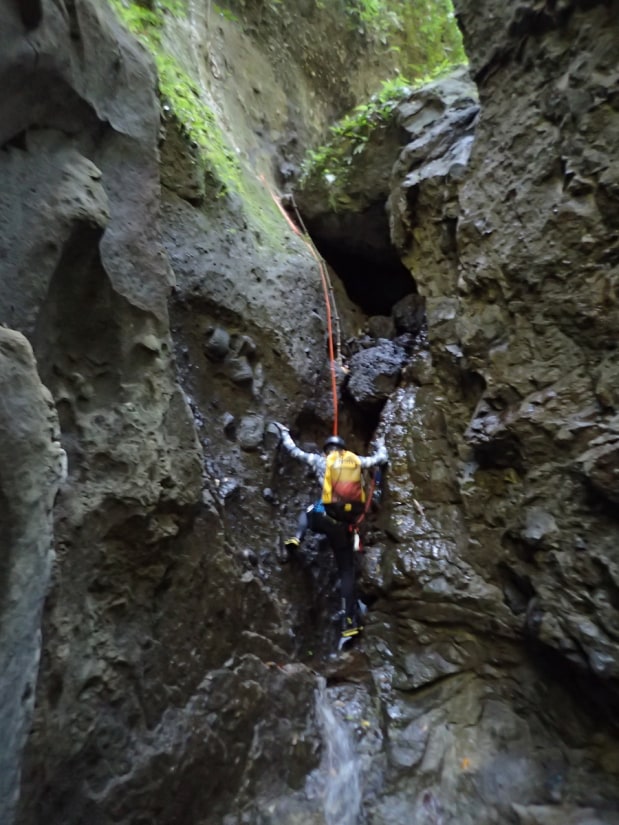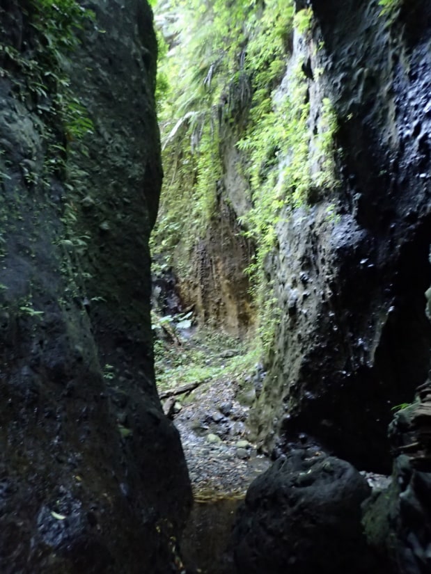 There were falling rocks at a few points. We knocked a couple down by grabbing at roots along the edge.