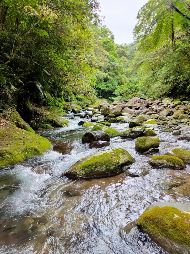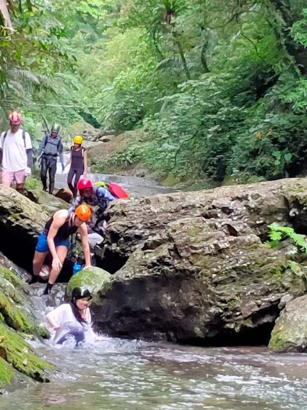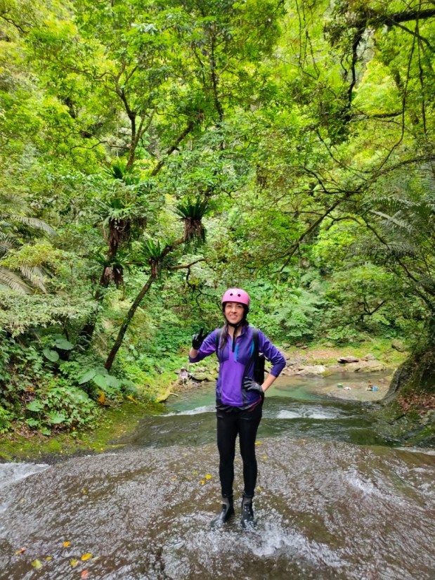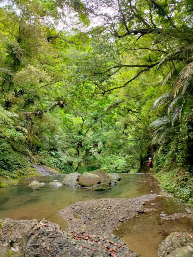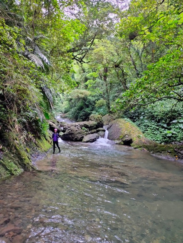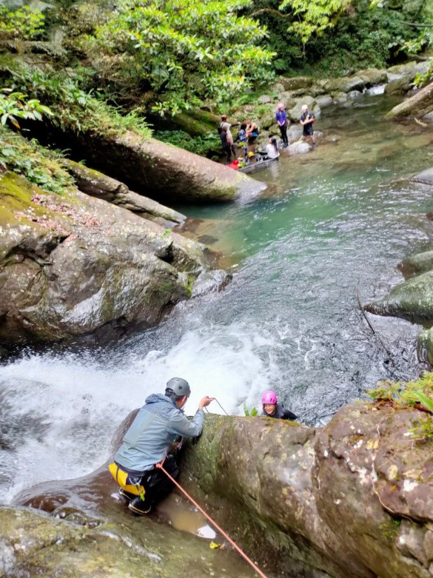Trees, water and mountains are emerald green. Many pools in this river. I traced the right fork which has most fun. The mainstream is boring, thus not worthy going. There is a 2M slope in the middle (24.90268,121.77072) that you either need to booast up with your teammate or pull yourself up on the pipe to get over.
