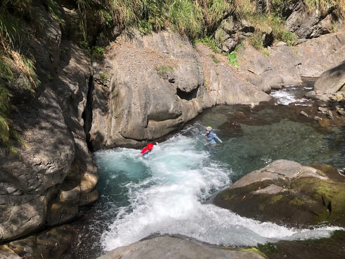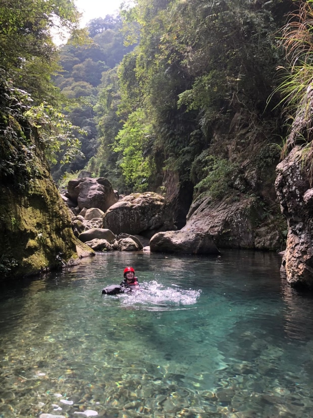 Maibalai River has beautiful emerald water and the water shines like ice jelly in the sun. There is a very fun slide further up and it doesn't take long. A chilling river trace. But this part of Maibalai River is very slippery and beginners should be careful with their steps.