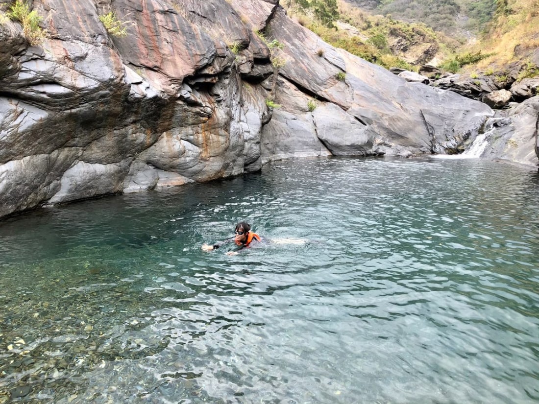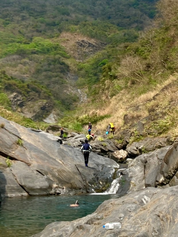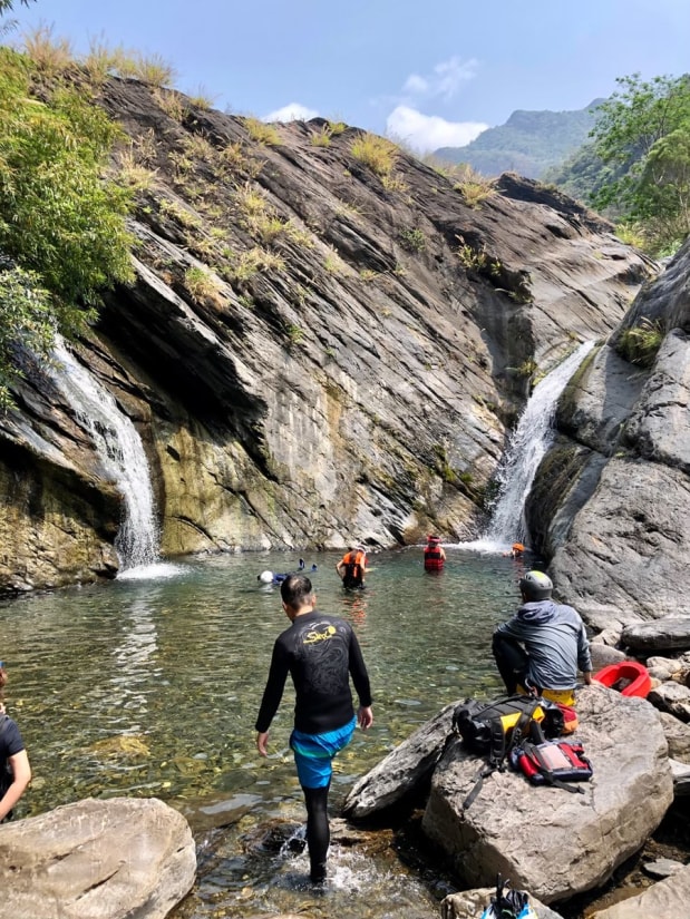Water in the river is very beautiful. The river has beautiful pools and many fish. There is a trail by mountainside, which leads further up. *Dejia Waterfall 德佳雙瀑 22.77313,120.70888 * Pools: 22.77254,120.70891; 22.77472,120.71071 *Tianhong Waterfall 天虹瀑布 22.77974,120.70953
