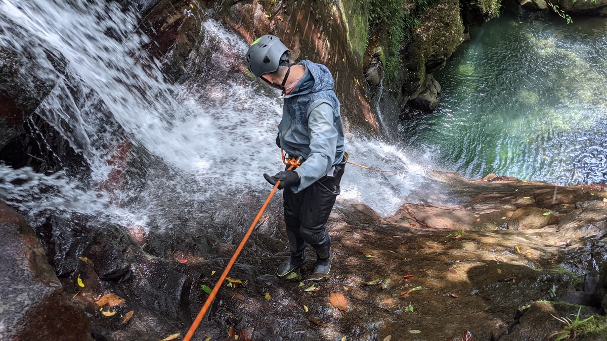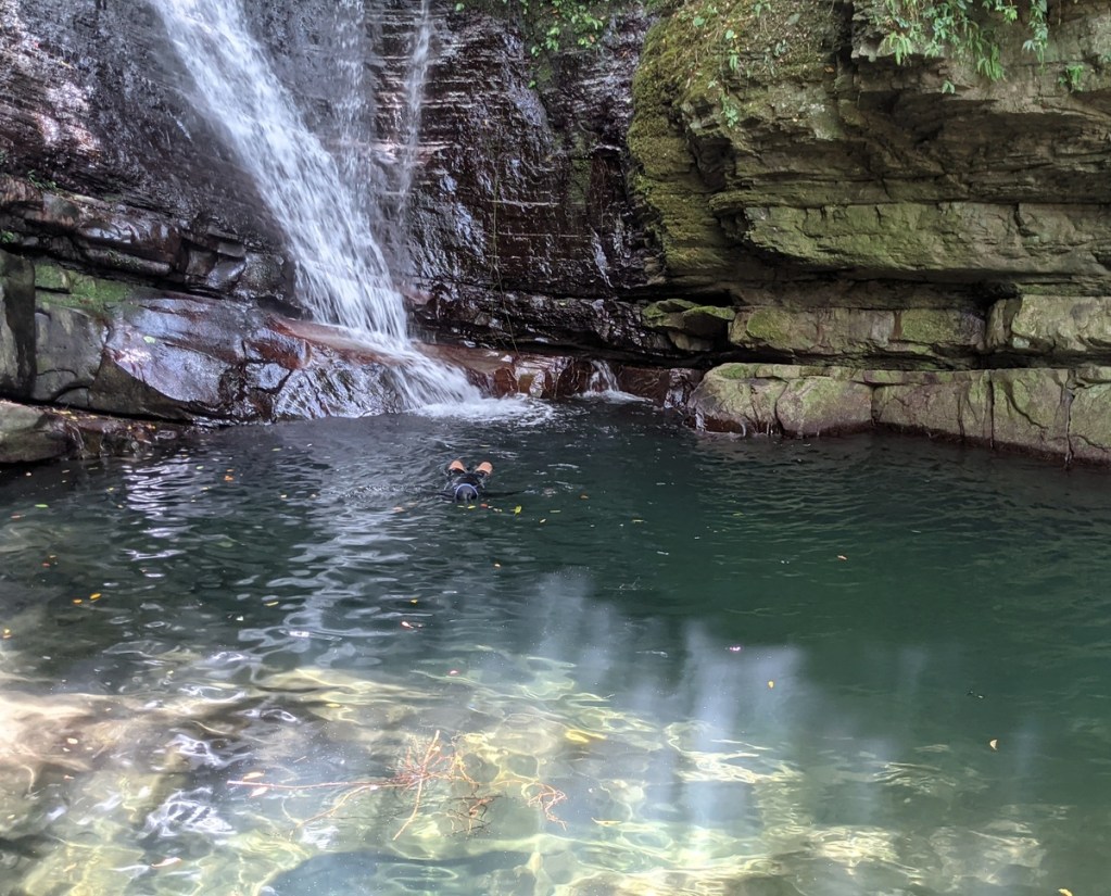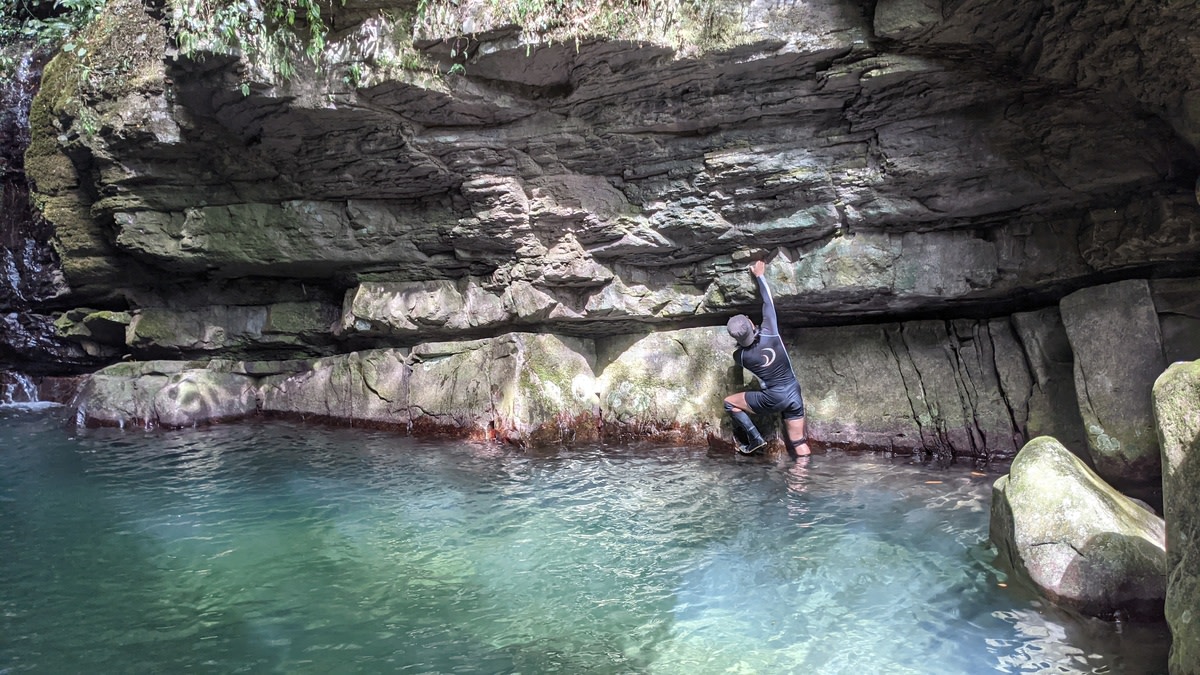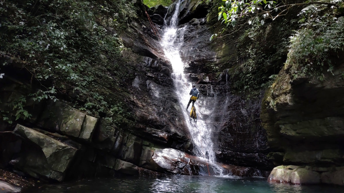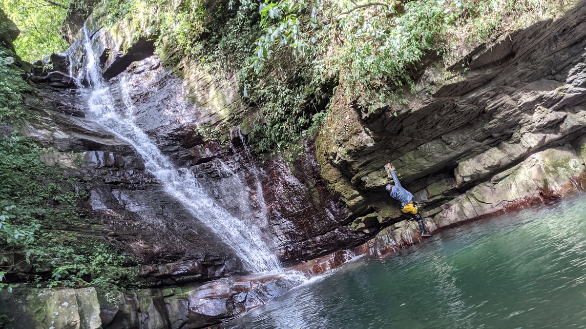 Jianshanhu Waterfall(尖山湖瀑布). There's a fork leading to the bottom and the top of the waterfall just by the road. Good for bouldering around the pond.