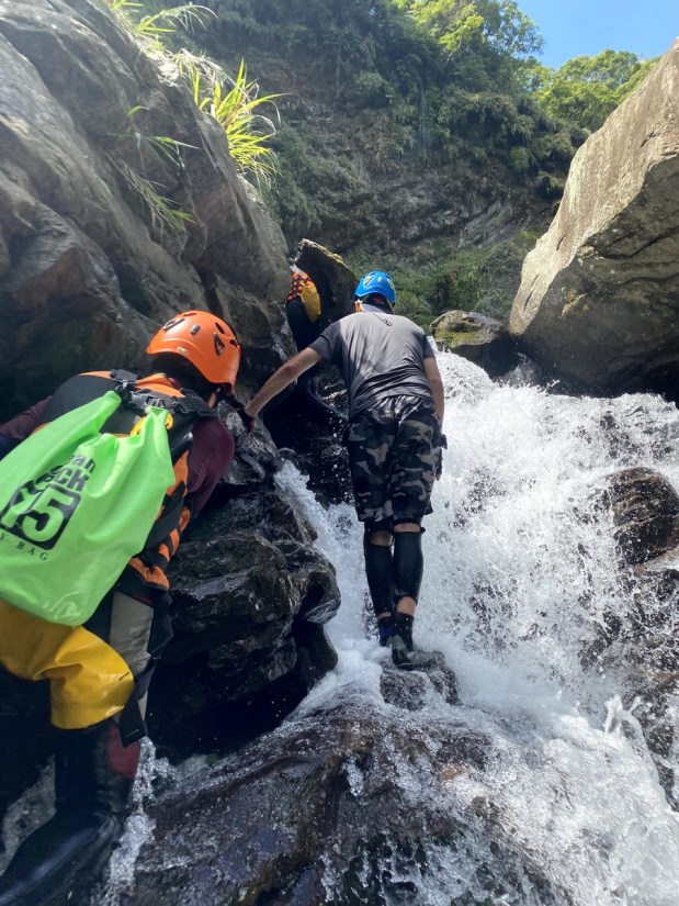 The destination is the famous Kuhuatan (苦花潭)24.543001,121.019188. 1. Shortcut (24.542640, 121.020780): The trailhead is in the village. Cars are not allowed to get in the village on weekends. 2. From near Qifenzui Waterfall(24.54543,121.02779). Intermediate river tracing route. Beautiful pools and quite a few climb-ups along the way. The water is chilling.
